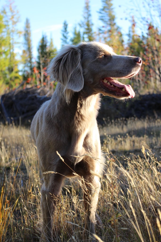 As Hail is particularly biddable for a Weimaraner, her temperament also makes her well-suited to field trialling. She wants to be a good girl, for the most part, and she enjoys working with me. When left to her own devices, she will show her independent streak, which often gets her into trouble. Hence why Pointer and Setter trials had less appeal… too much room for unplanned protein collection (aka bunny hunting).